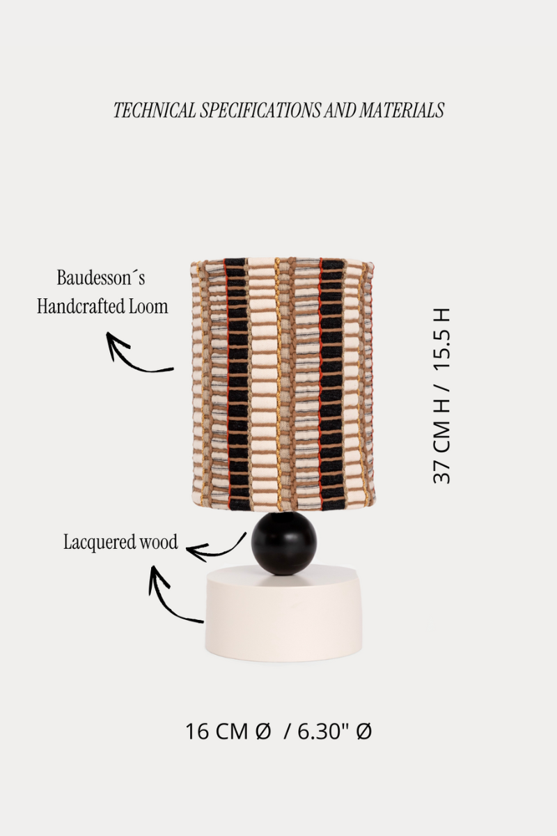 Su base color hueso de madera lacada junto con la bola negra crea una figura arquitectónica perfecta, transmitiendo calma y tranquilidad.