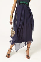 Bámbula de seda 100% para la parte inferior llena de asimetrías y movimiento, con forro de tencel.