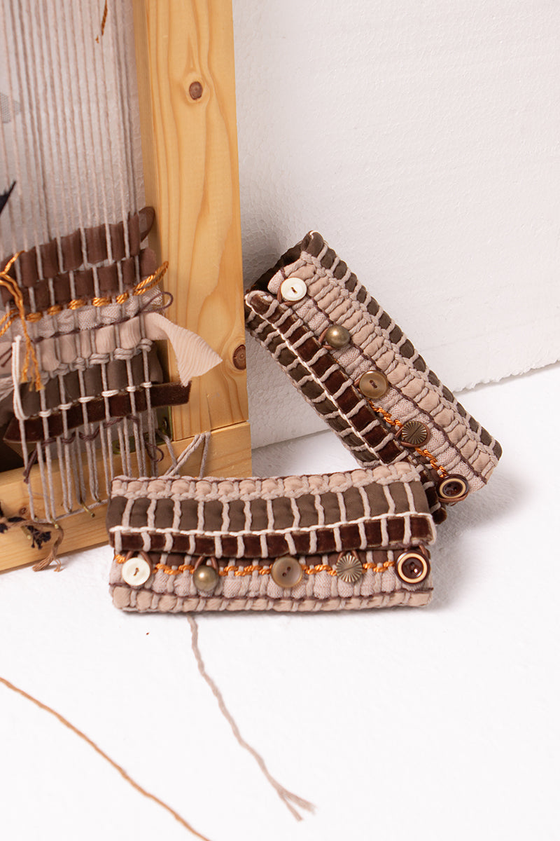 Tejido hecho en telar con texturas como seda, algodón o tul. Botones vintage en distintos tamaños.
