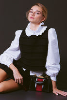 La Camisa Smoking, un diseño lleno de detalles inspirada en las clásicas camisas smoking de hombre. Mantenemos las jaretas en la pechera y las añadimos en sus puños acabados en pico como las corbatas.