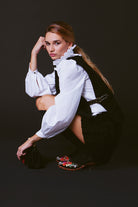 Perfecta tanto con nuestro chaleco Keira y camisa smoking como con un cuello alto negro básico y unas mary jane.