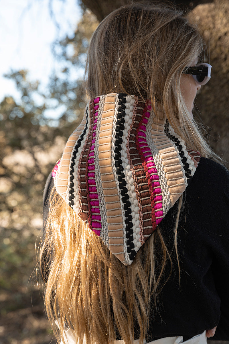 Nuestra Bandana fucsia está con nuestro icónico telar. Gracias a su combinación de colores aporta el toque diferente a cualquier look.