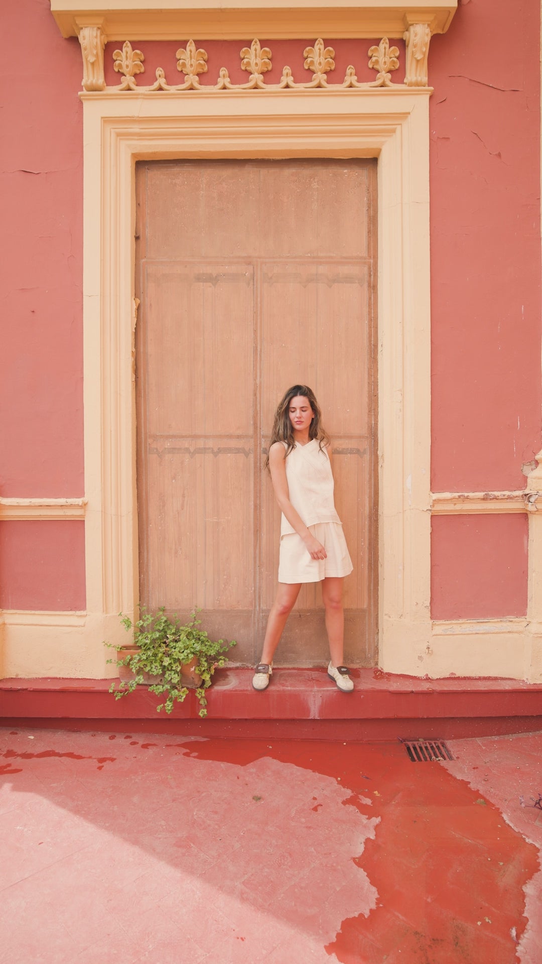Bermuda Costuras Hueso utilizada para escaparate y shooting