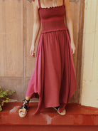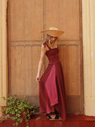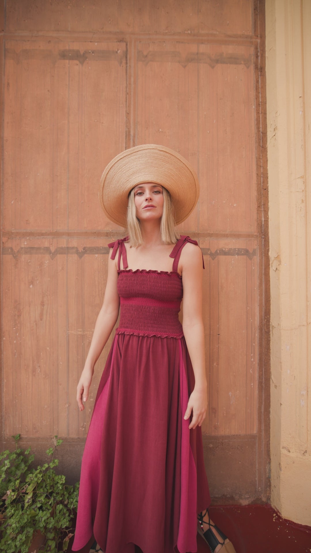 Vestido Martini bicolor granate y fucsia utilizado para escaparate y muestras