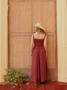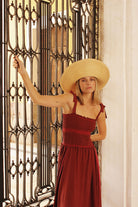 El vestido Martini, en un tejido de lino y viscosa con unos colores que no dejarán a nadie indiferente. Su escote en palabra de honor remarca la silueta con unos bordados que lo hacen único.