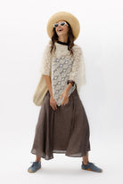 Atrévete a jugar con ella y darle un estilo distinto cada vez que la lleves, esto hace que ninguna capa sea nunca igual. Su movimiento y transparencias hacen de esta capa una prenda muy ligera y versátil.