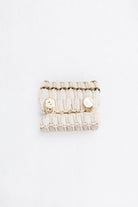 Tejido hecho en telar con texturas como seda, algodón o tul. Botones vintage en distintos tamaños.