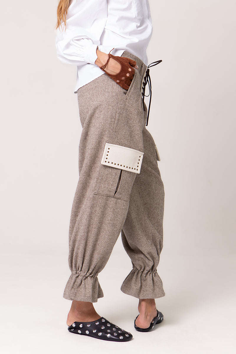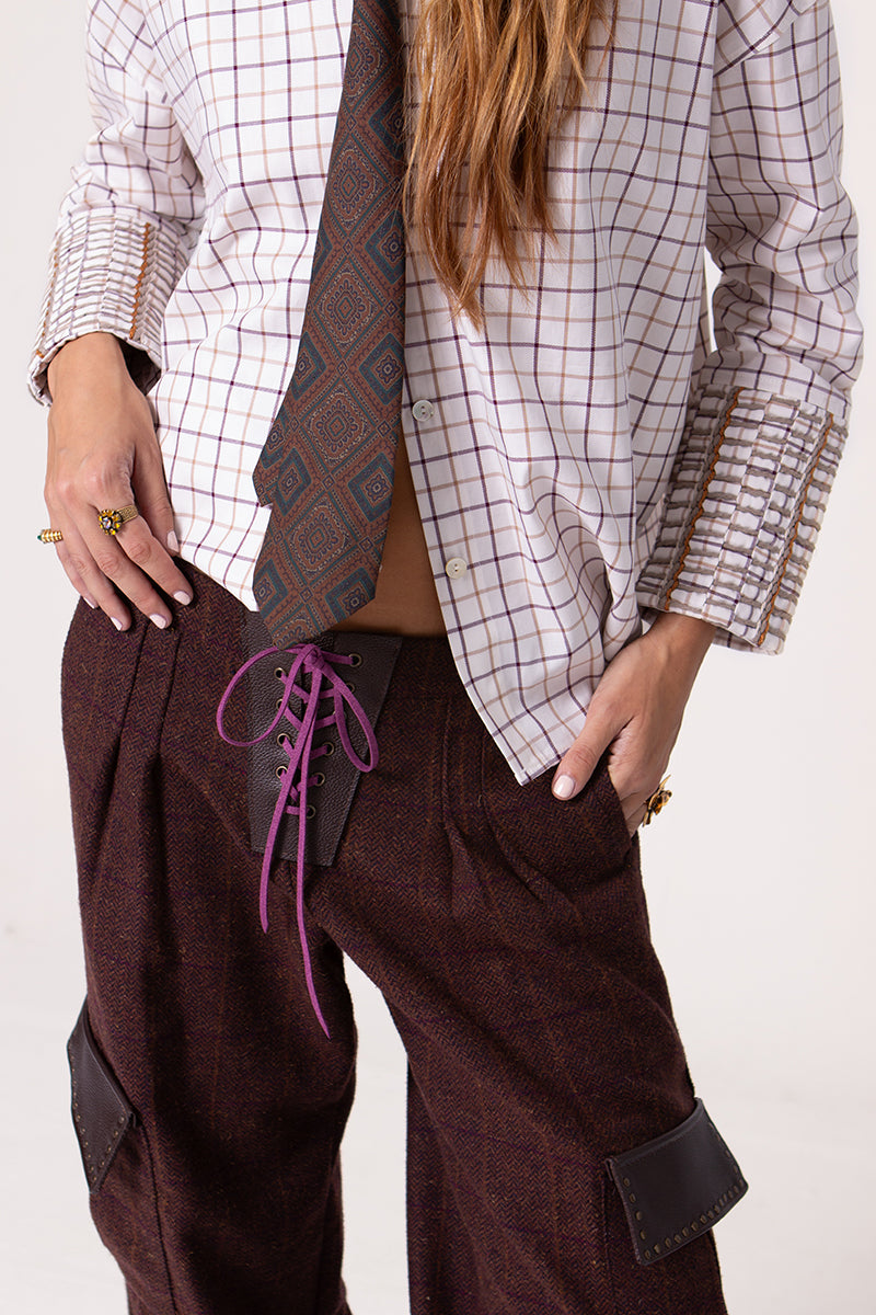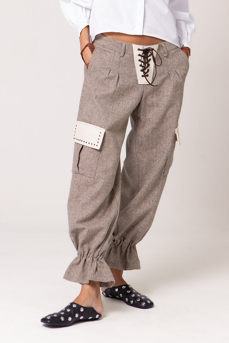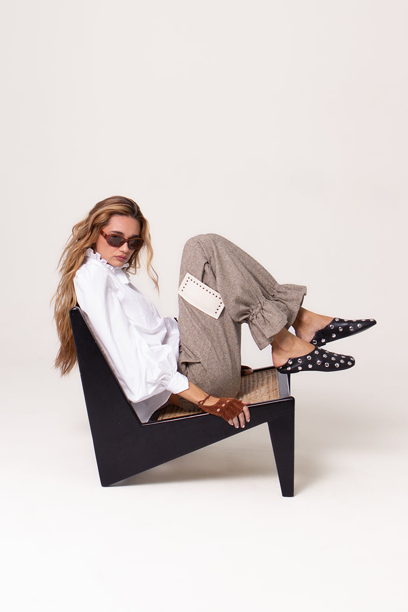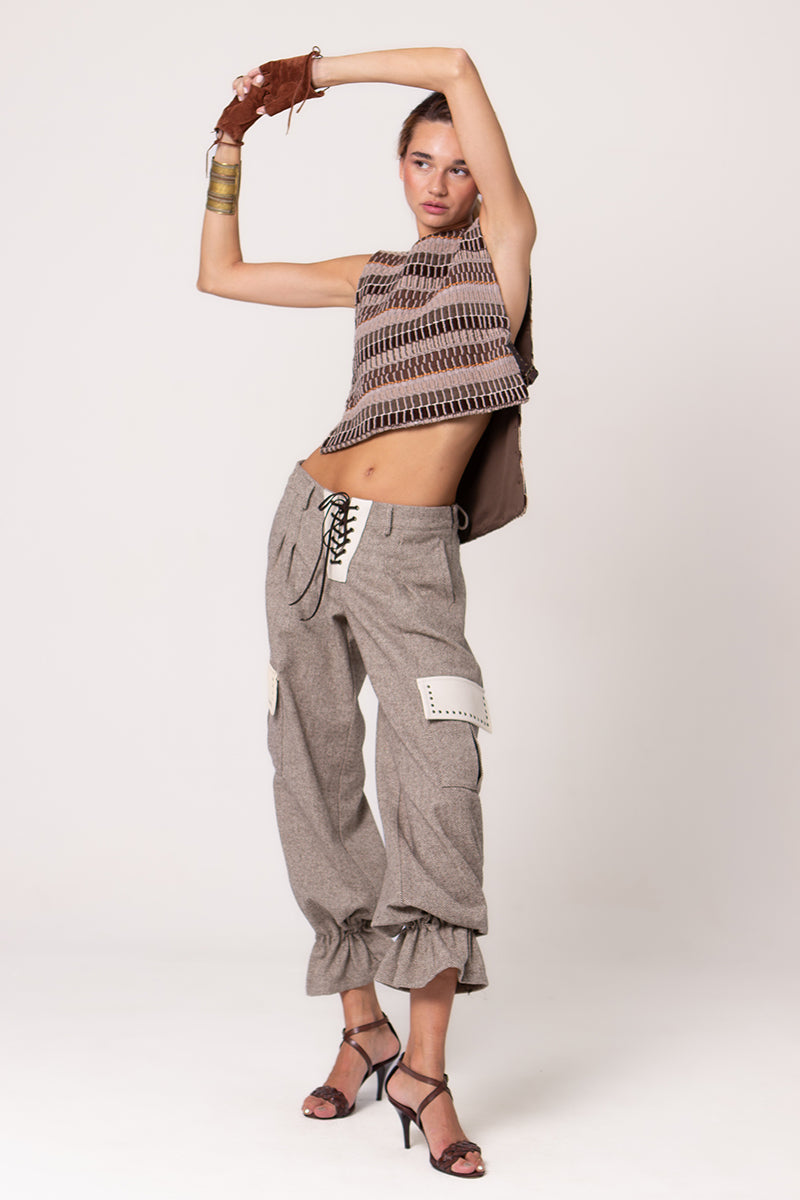 Medusa Linen Trousers Beige and Black Stripes Sample