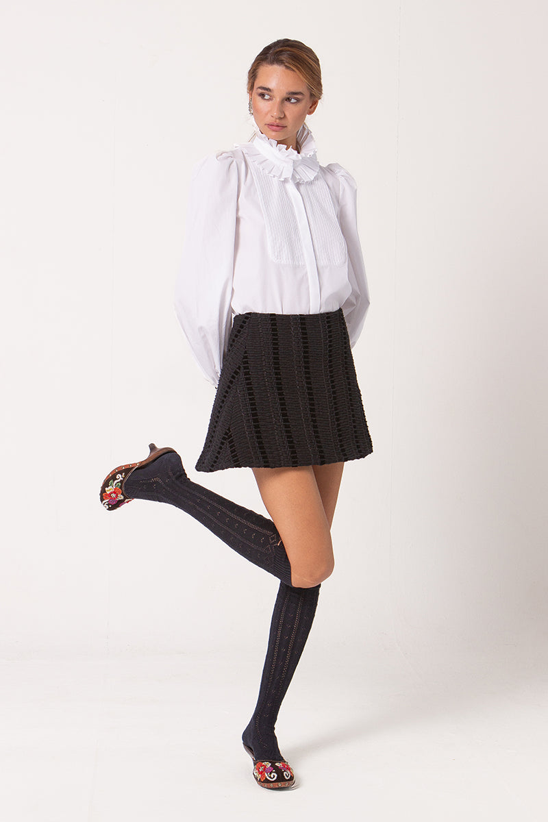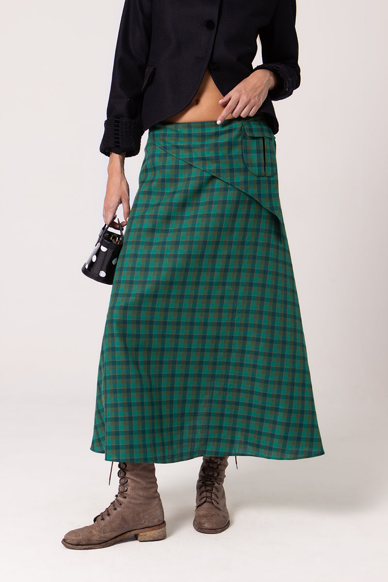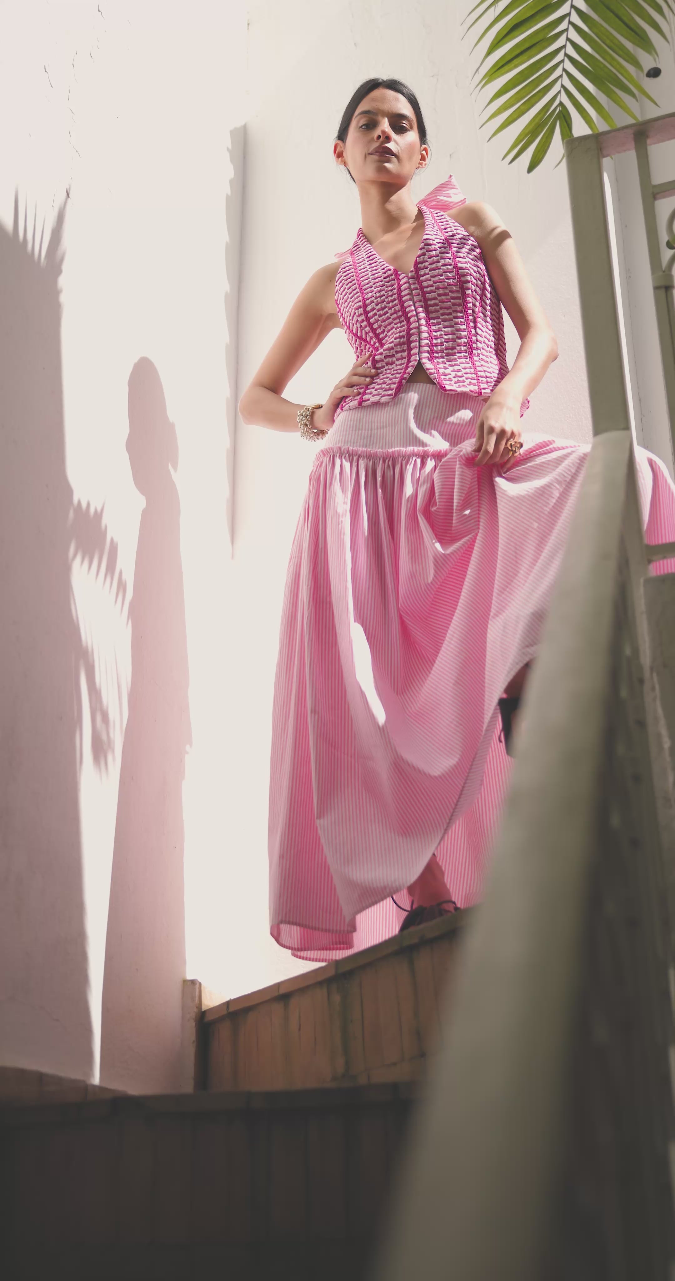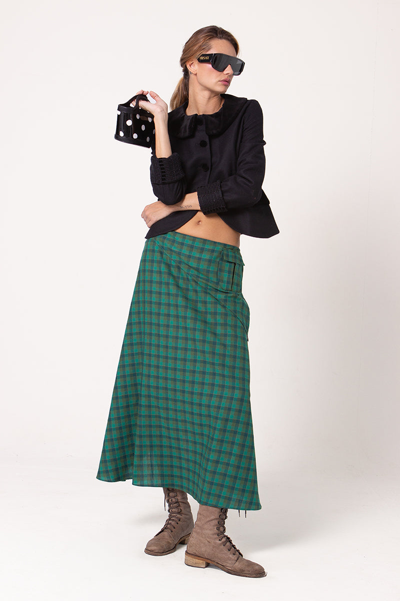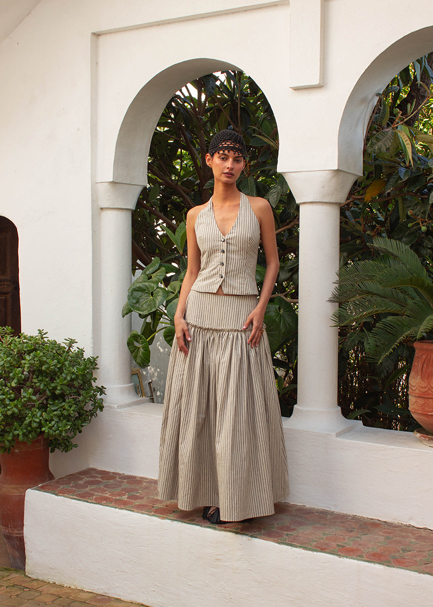 Mabrouka linen skirt, beige and black stripes, sample and showcase