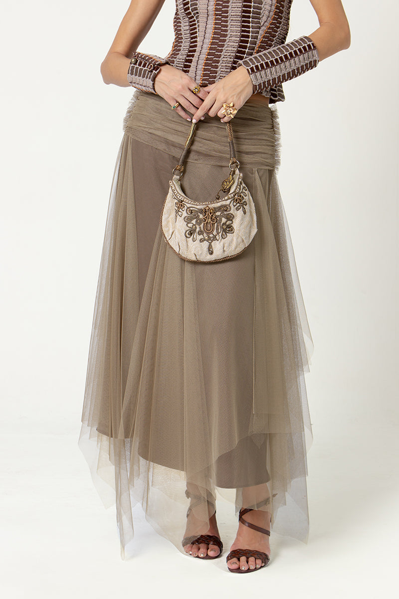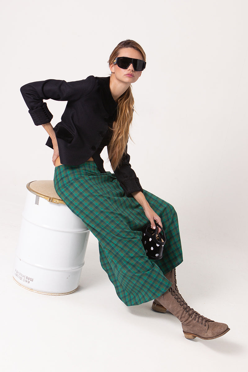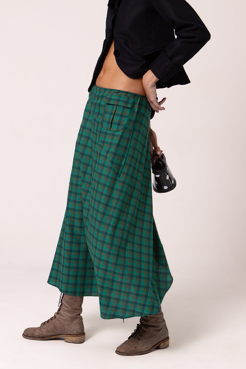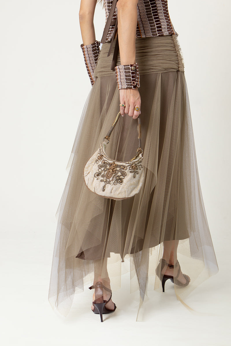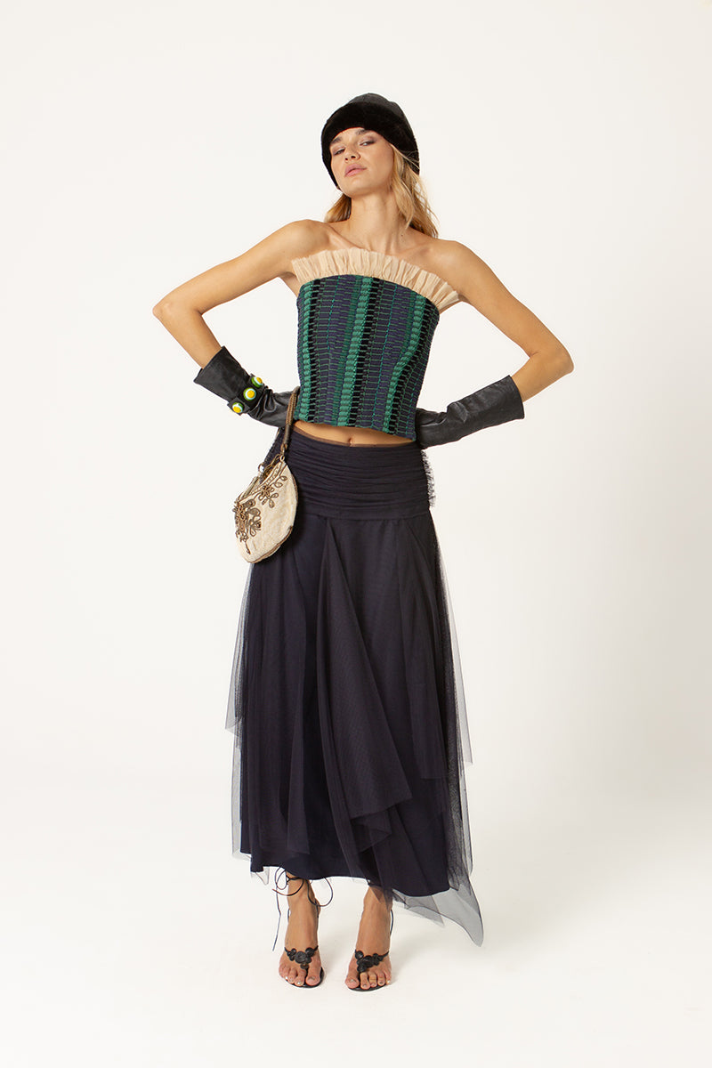 Mabrouka linen skirt, beige and black stripes, sample and showcase