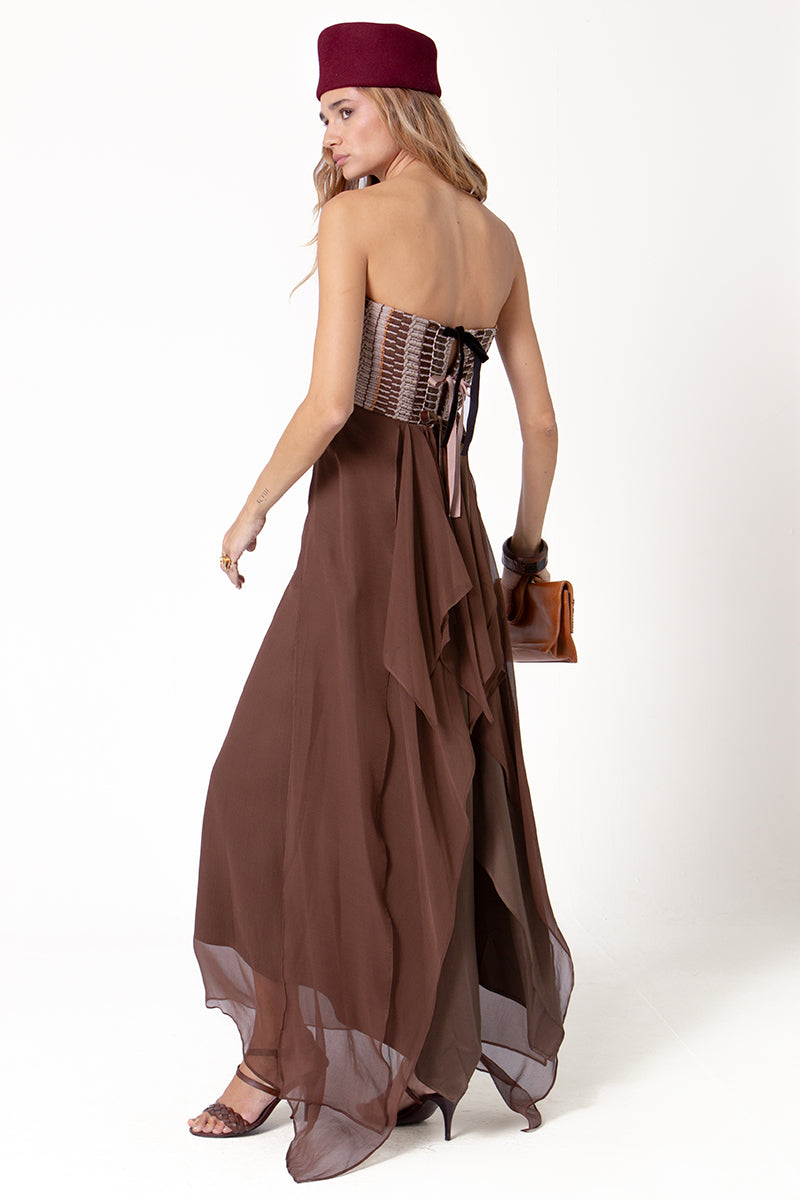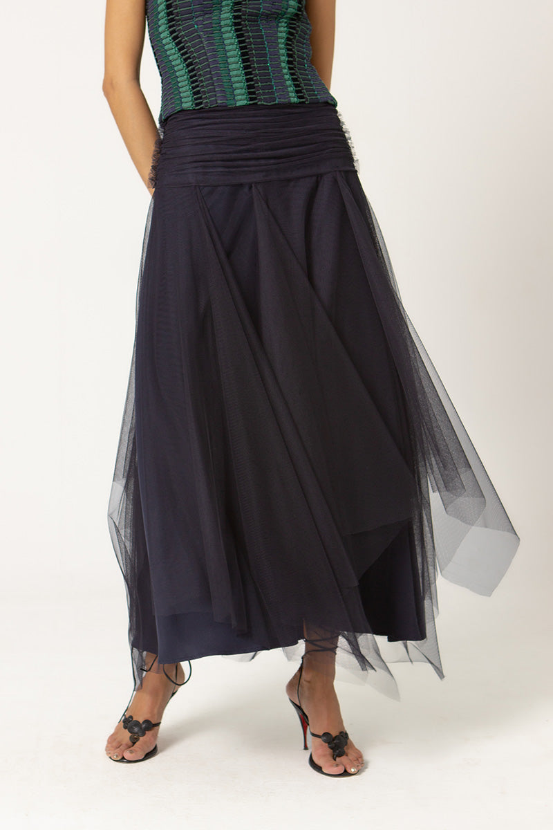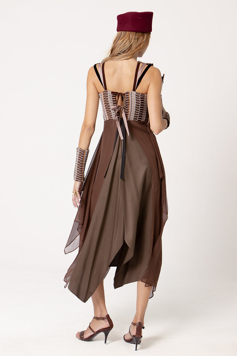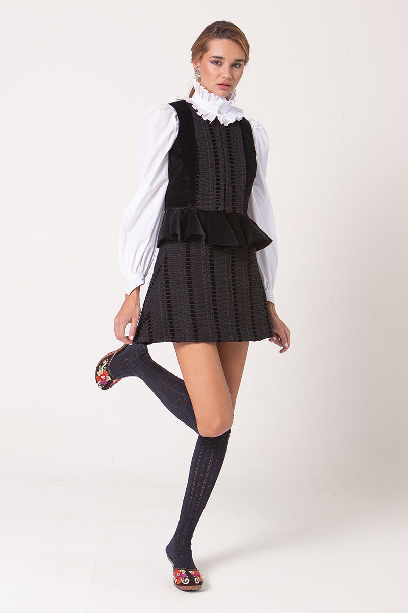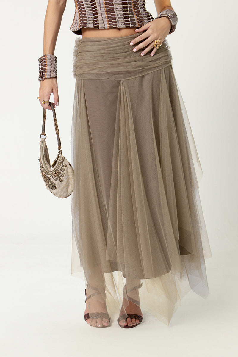 Mabrouka linen skirt, beige and black stripes, sample and showcase