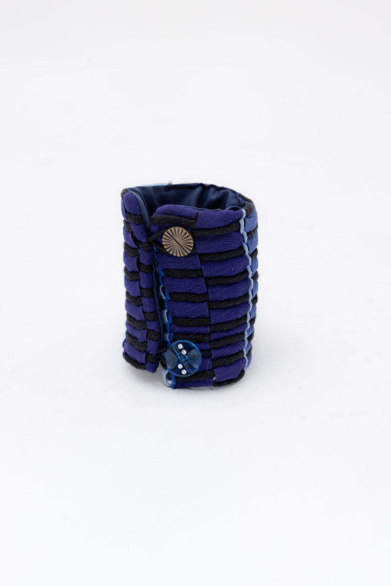 Tejido hecho en telar con texturas como seda, algodón o tul. Botones vintage en distintos tamaños.