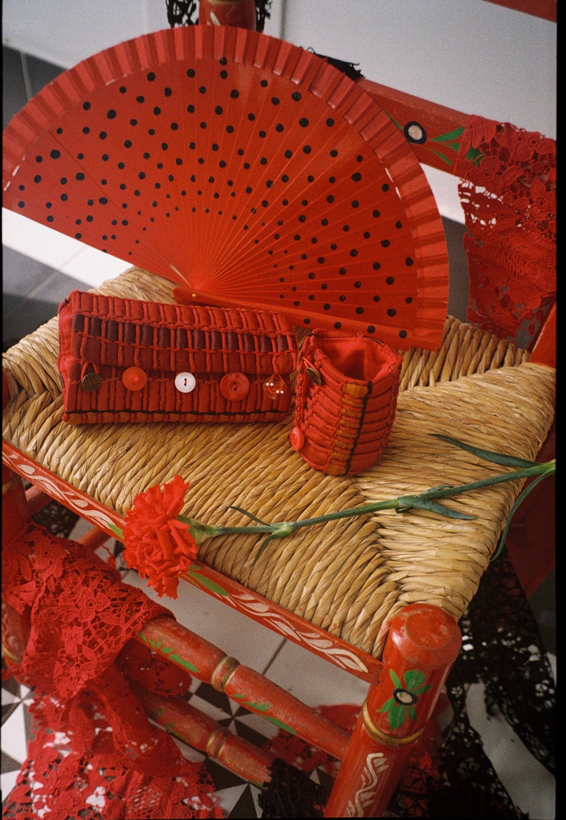 Tejido hecho en telar con texturas como seda, algodón o tul. Botones vintage en distintos tamaños.