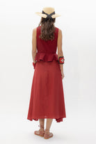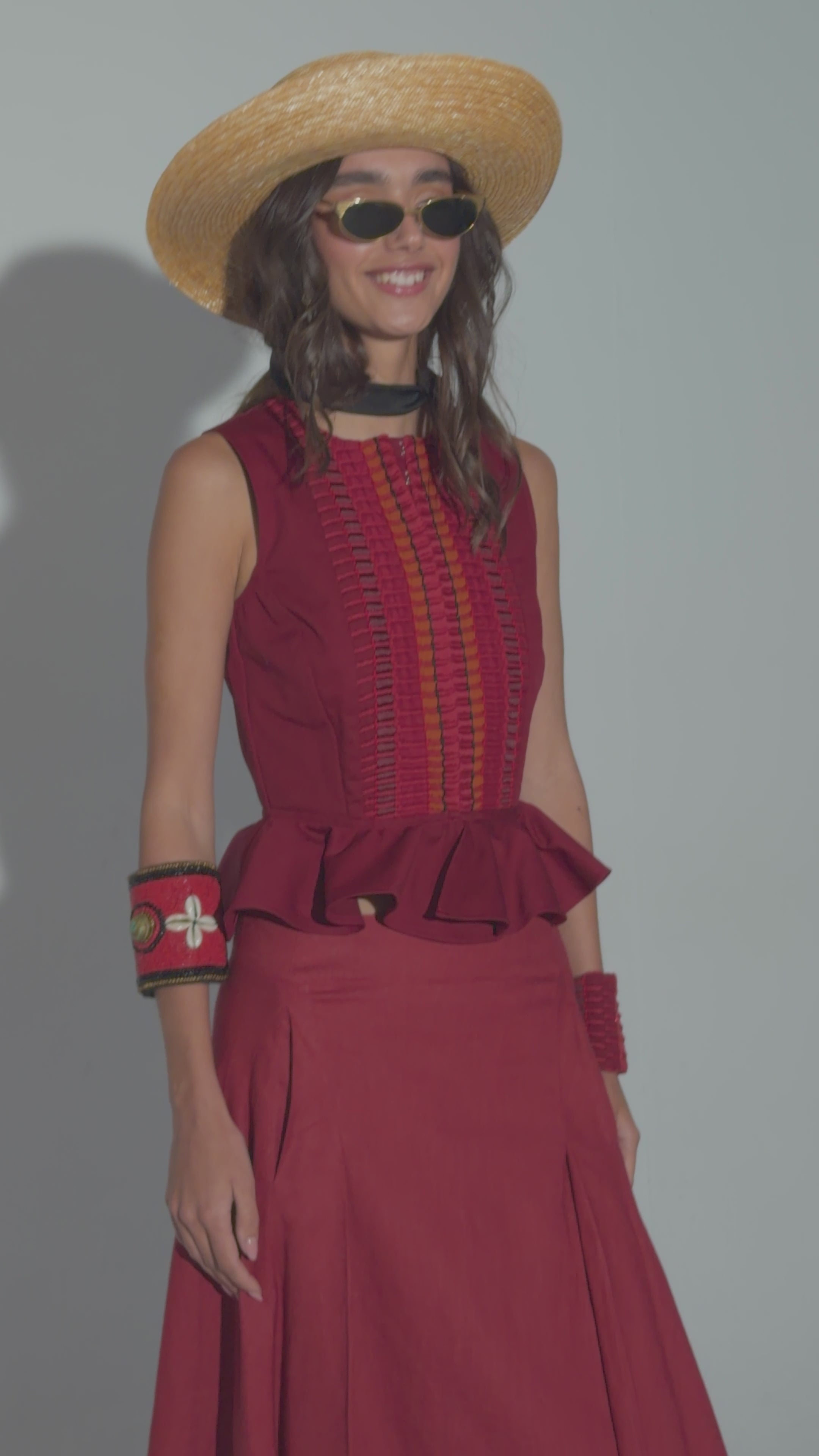 Su tejido de algodón de gran estructura hace que se adapte perfectamente al cuerpo además del volumen tan especial que crea en el volante de esta pieza.