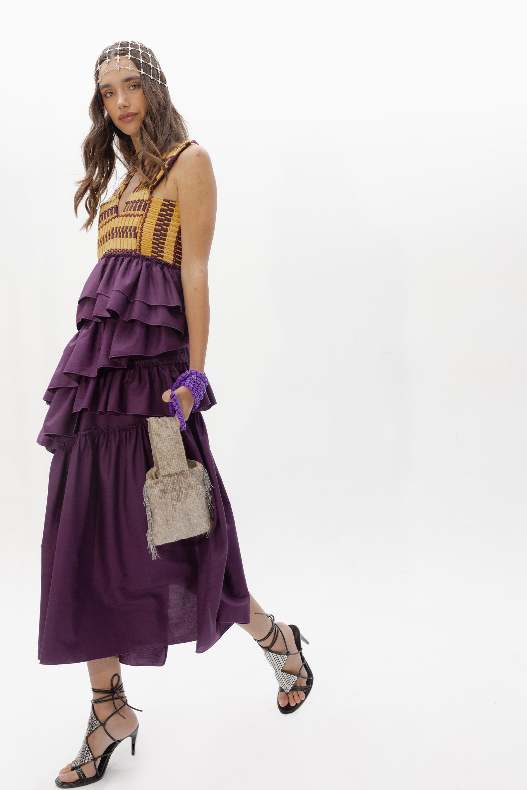 El Vestido Cas, una pieza diseñada con nuestro icónico tejido hecho en telar con texturas como seda, lino y tul.