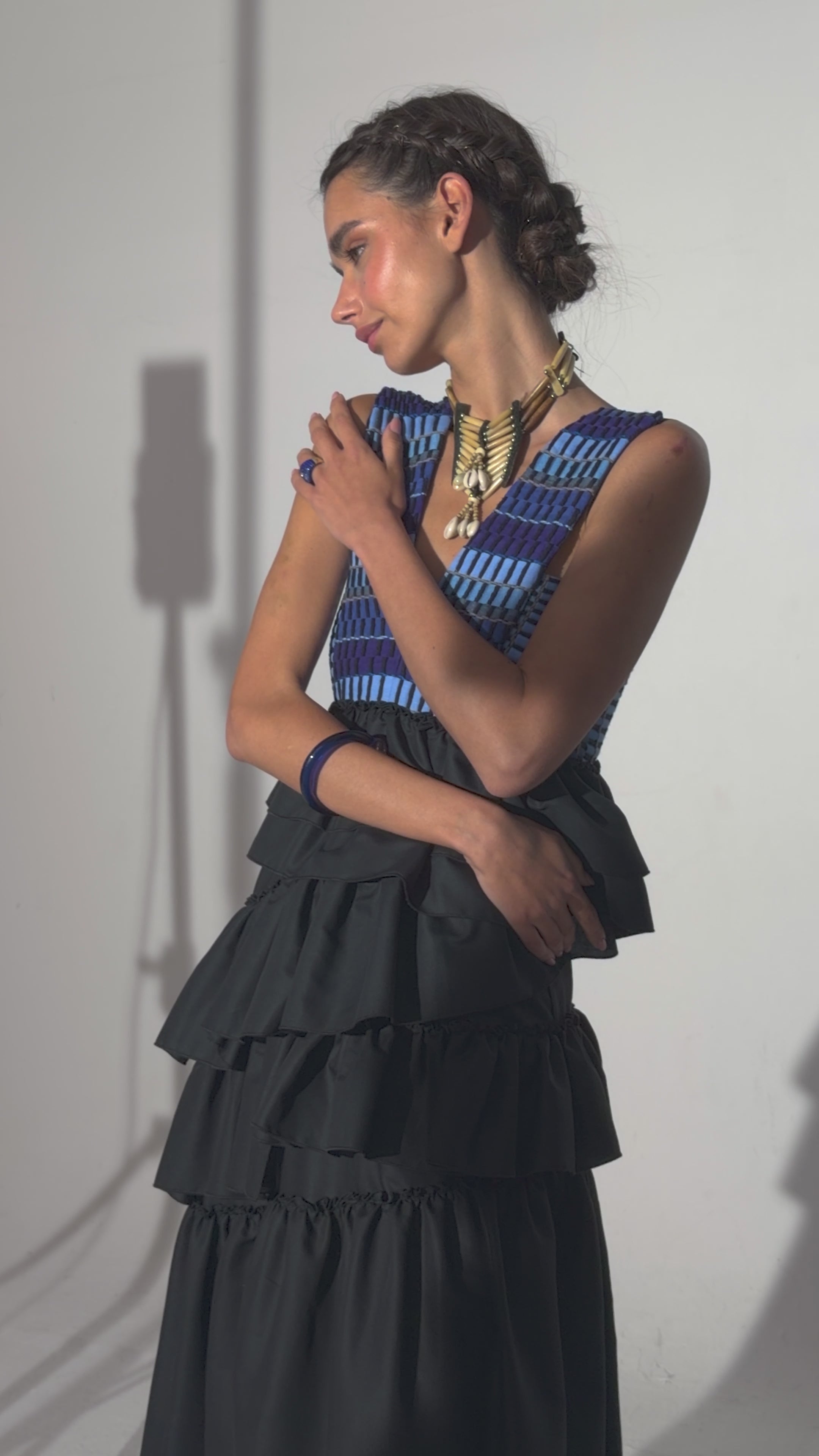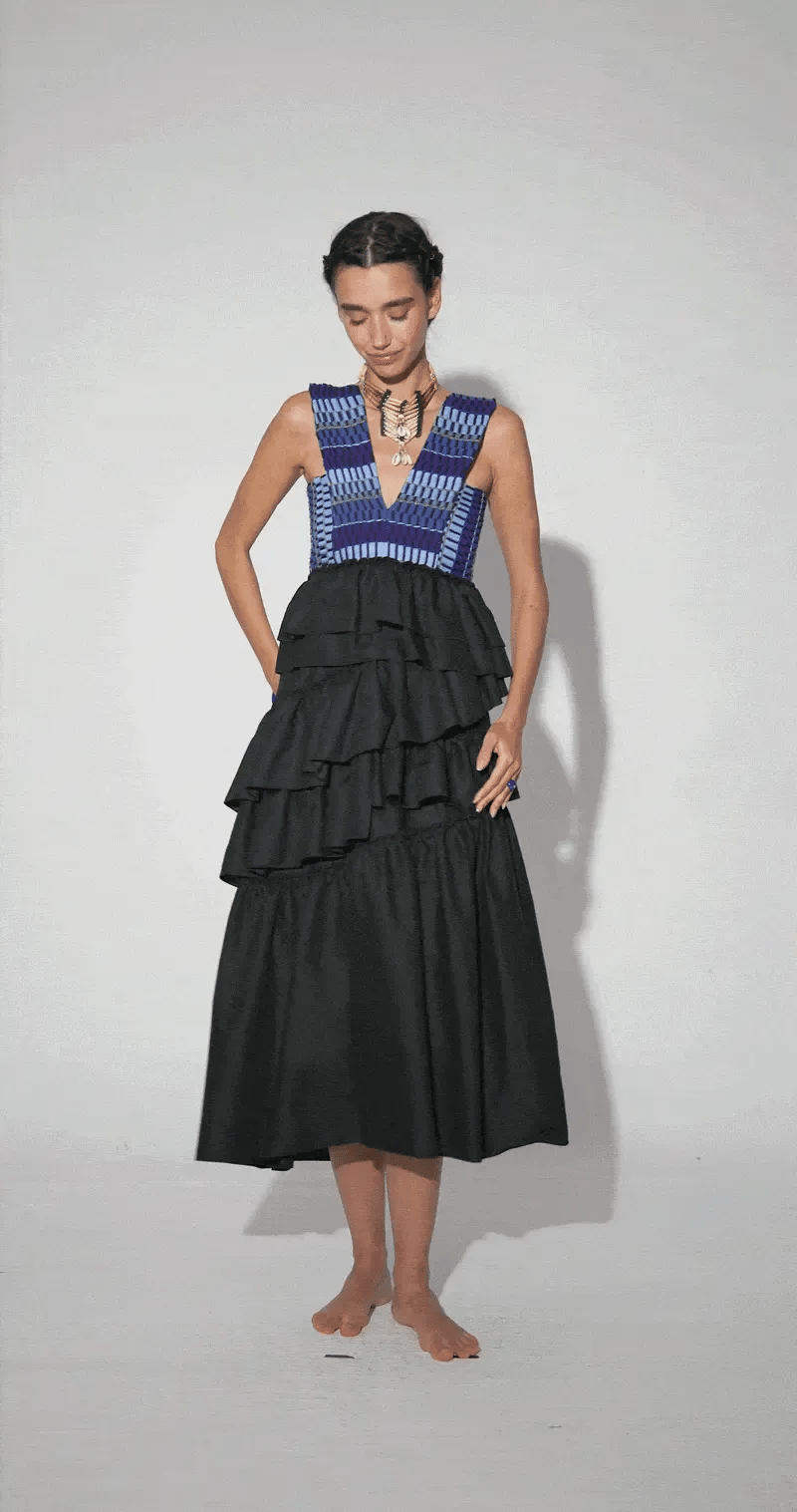 El Vestido Cas, una pieza diseñada con nuestro icónico tejido hecho en telar con texturas como seda, lino y tul.