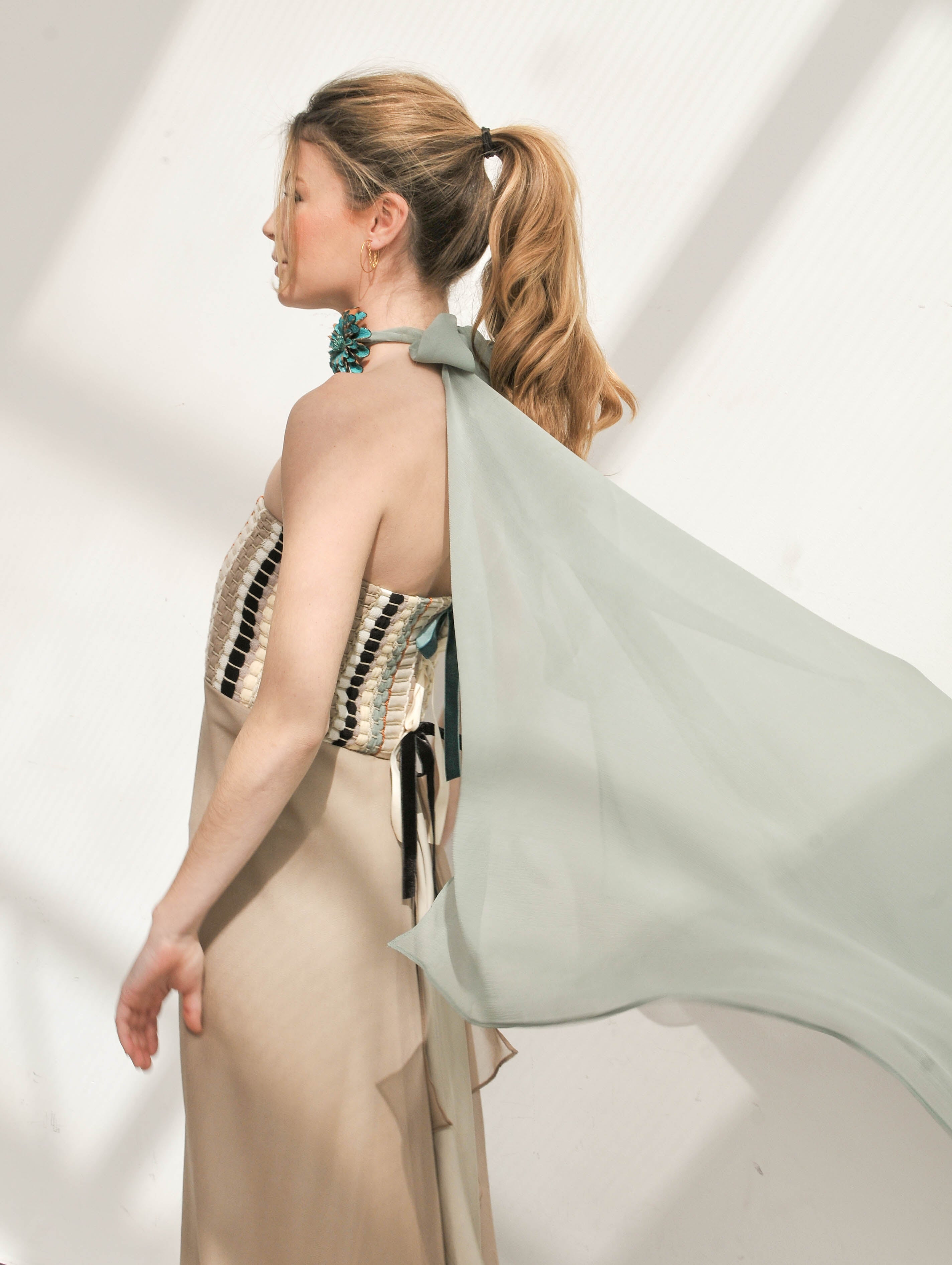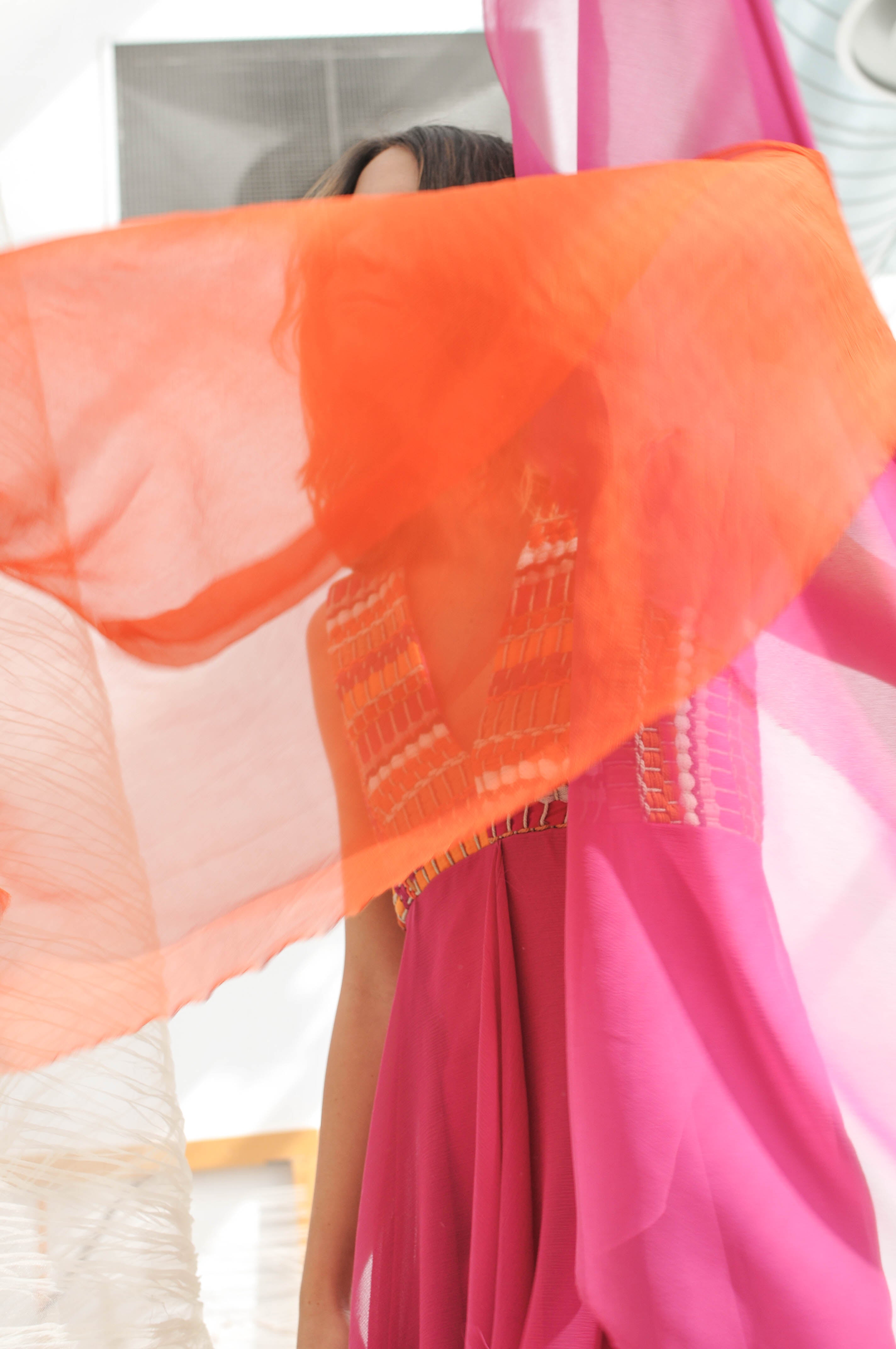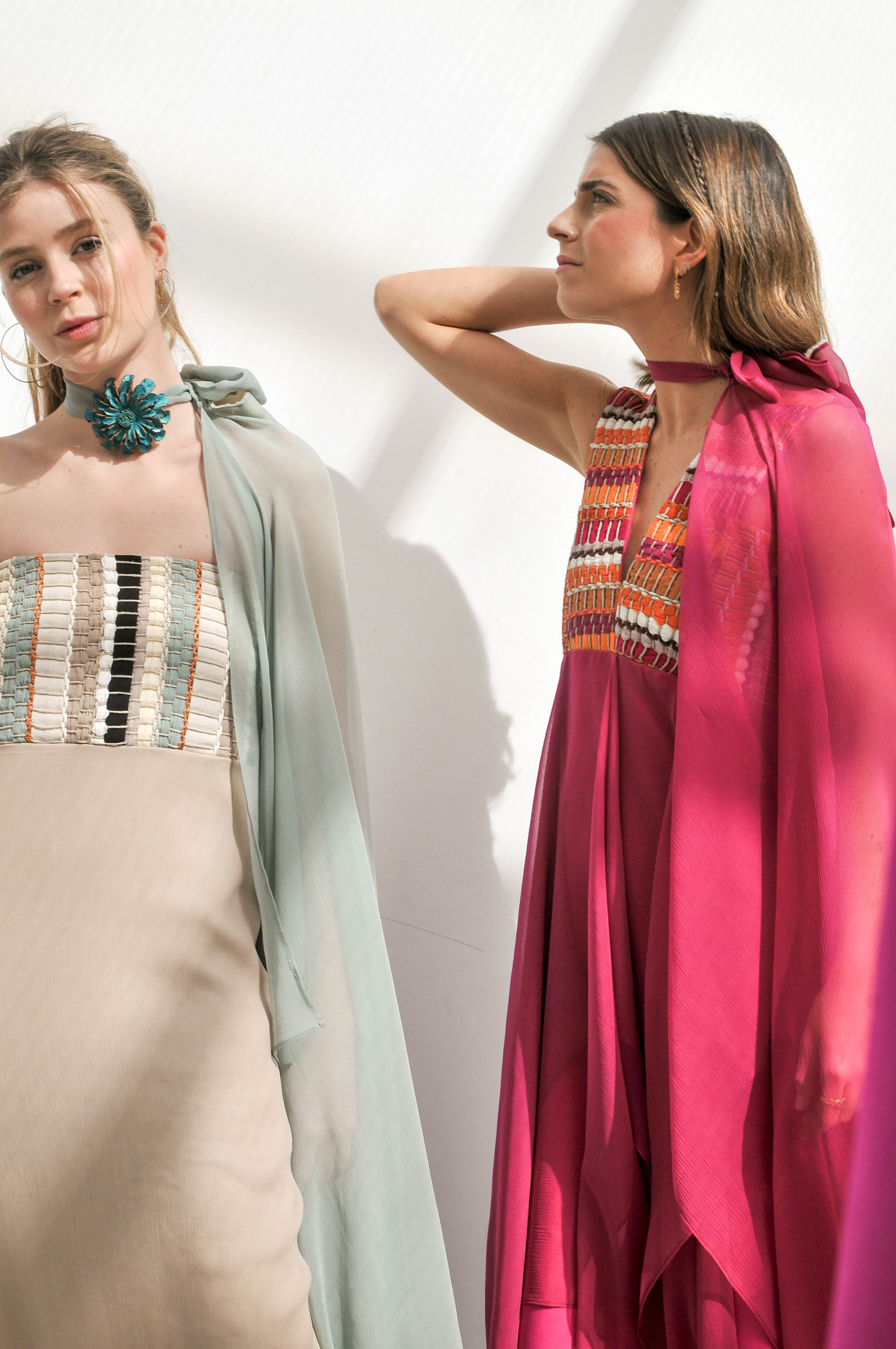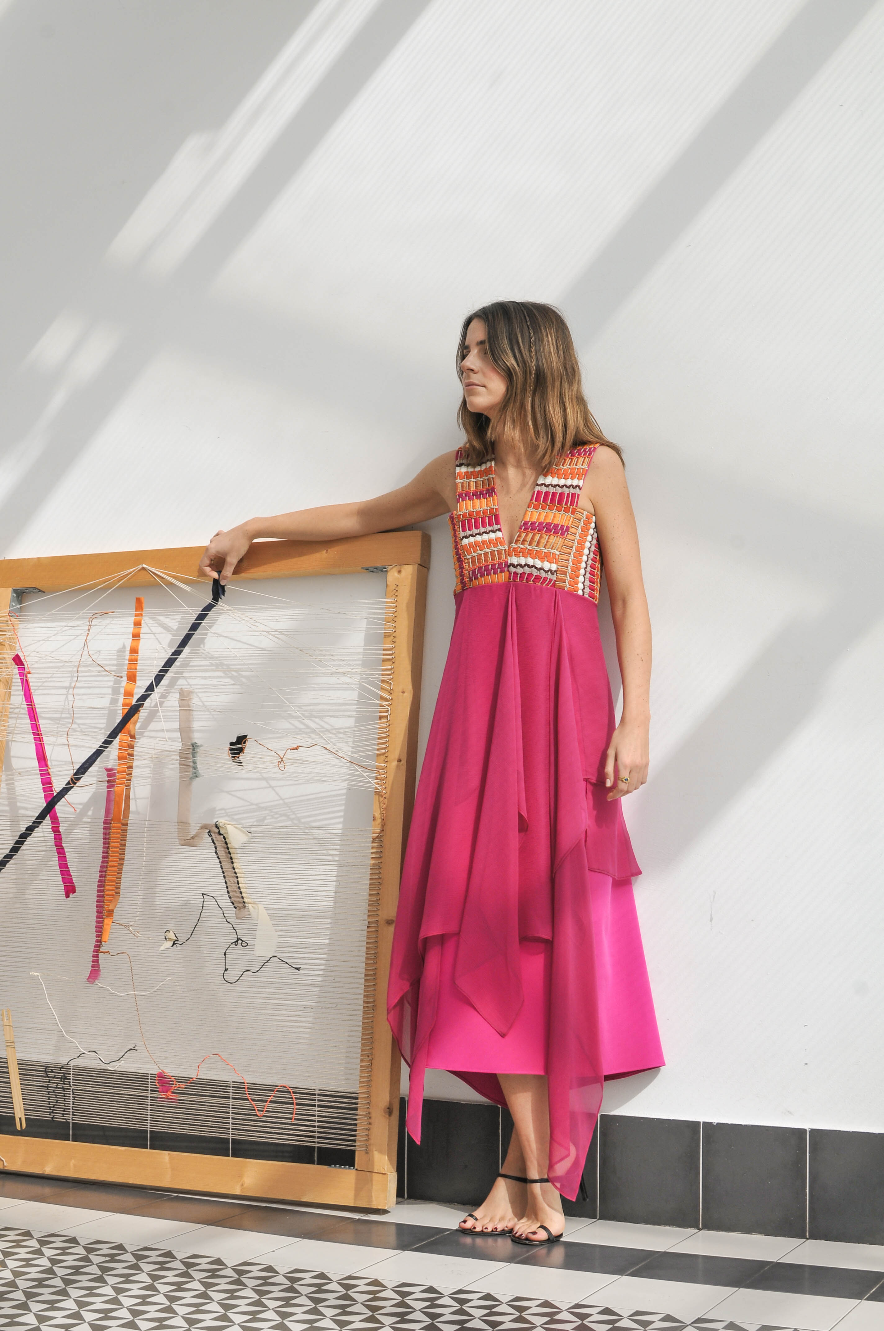 Inspirada en dos grandes artistas Josef y Anni Albers. La manera de tratar los tejidos y las fibras de Anni, junto con la visión y estudio del color del gran Josef Albers, dan lugar a una colección llena de texturas, movimiento y juegos geométricos.